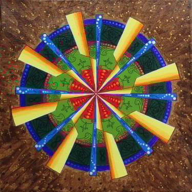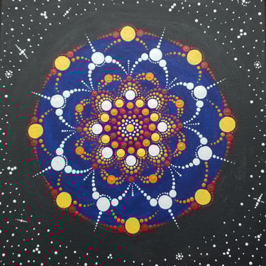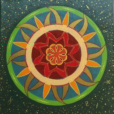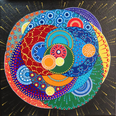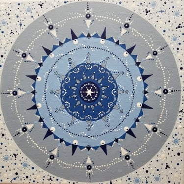 Mandalas, 2020 through 2023, acrylics on 8"x8" canvas.
