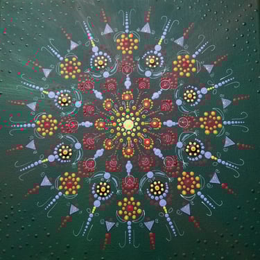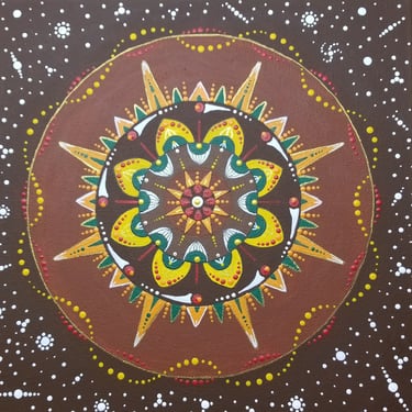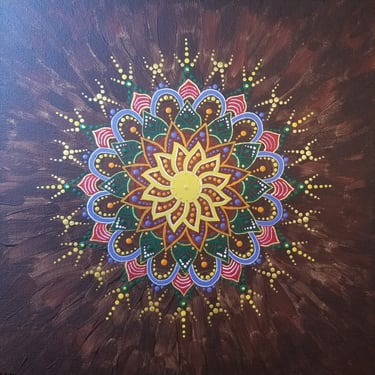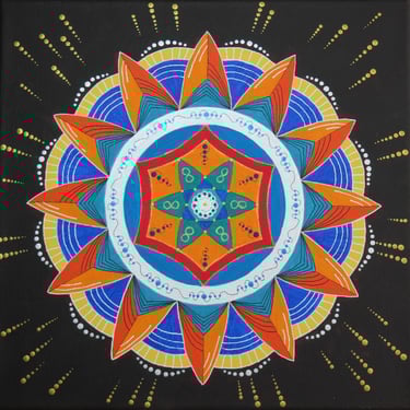 These mandalas use vibrant acrylic colors, and most often also metallic hues, which do not show up so well in digital photos.