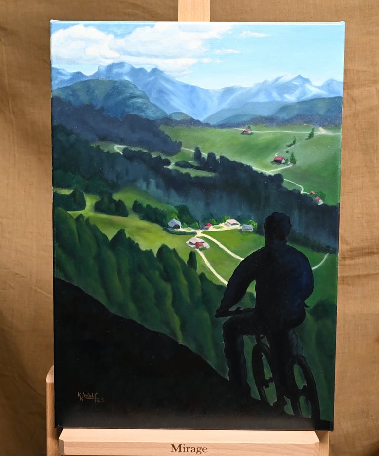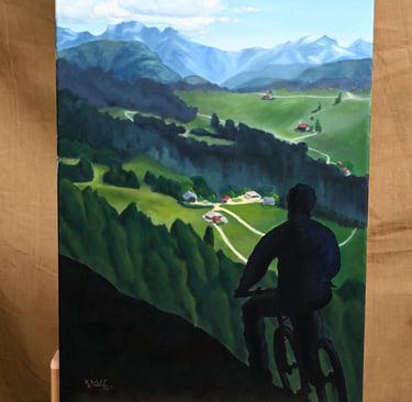 I transformed my watercolor sketch into an oil painting. This scene reminds me of the many mountain hikes we had to do on our class trip in 8th grade. Up was torture, but the views were always just magnificent.